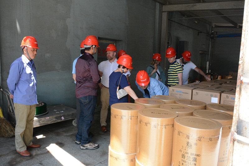 2017年5月11日上午,歐洲重要客戶一行8人蒞臨中華化工參觀考察,公司總經(jīng)理汪建根、外貿(mào)部經(jīng)理陳巍等接待了各位來賓。汪總以PPT的形式詳細介紹了公司的基本情況以及未來的發(fā)展規(guī)劃,同時希望與歐洲的合作會更加密切共贏,陳巍經(jīng)理也對各位來賓的提問一一做了解答。座談交流結(jié)束后,客人們參觀了公司香蘭素包裝車間和廠區(qū)。