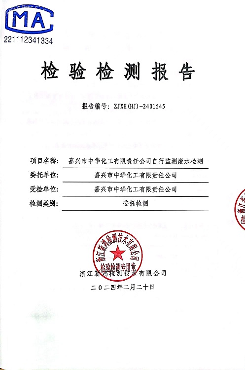• 中華化工4季度廢水檢測(cè)報(bào)告