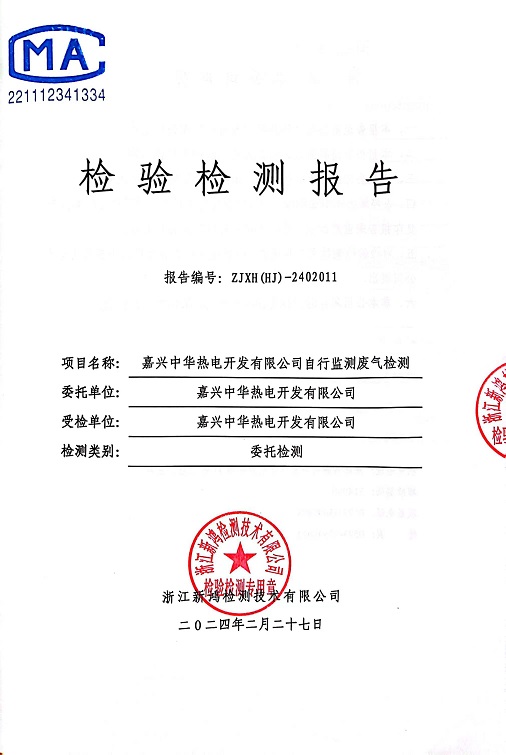 - 中華熱電11月廢氣檢測(cè)報(bào)告