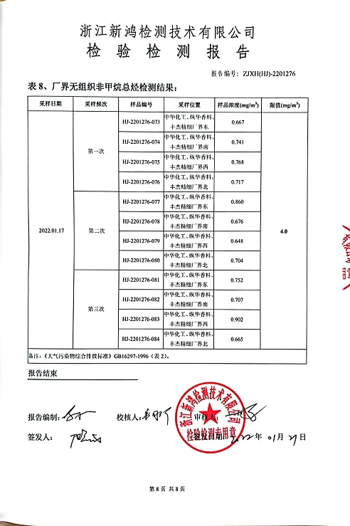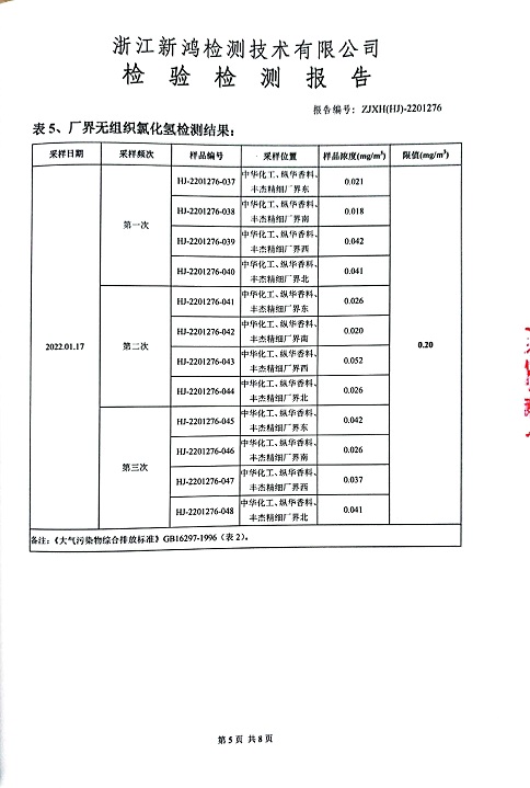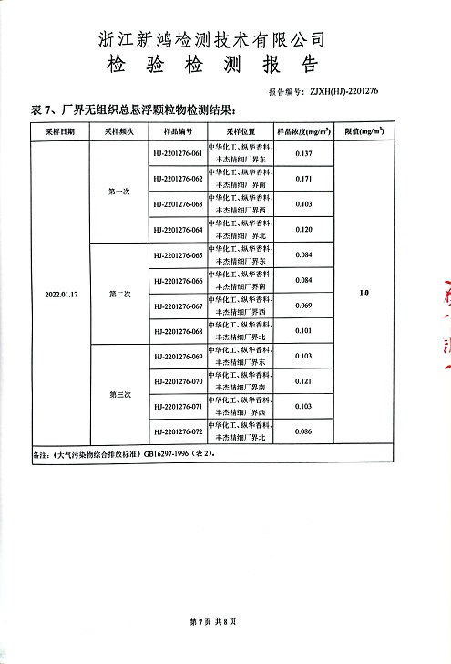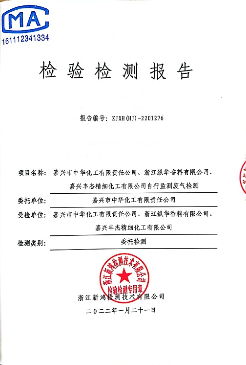 報(bào)告名稱:中華化工、縱華、豐杰2022年1季度廠界檢測(cè)報(bào)告