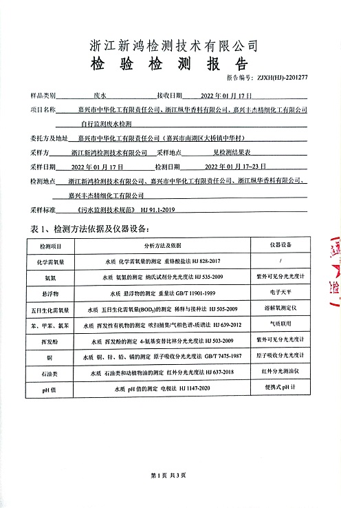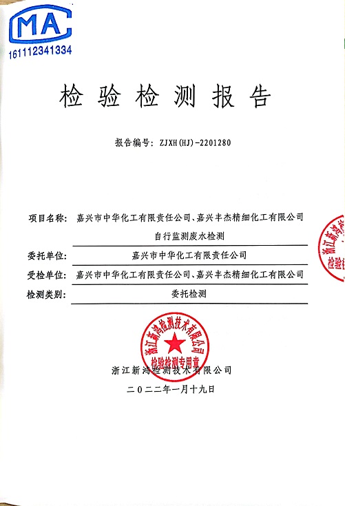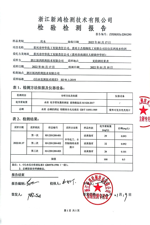 報告名稱:中華化工、縱華、豐杰2022年1季度廢水檢測報告