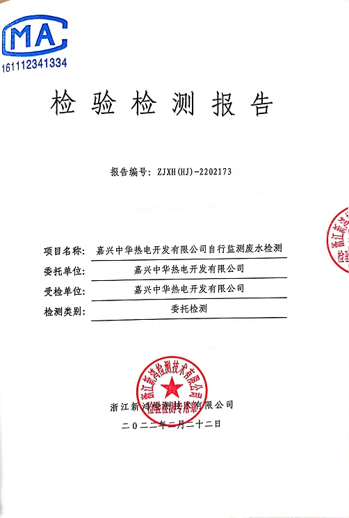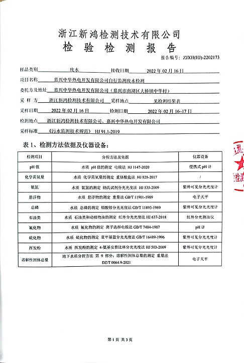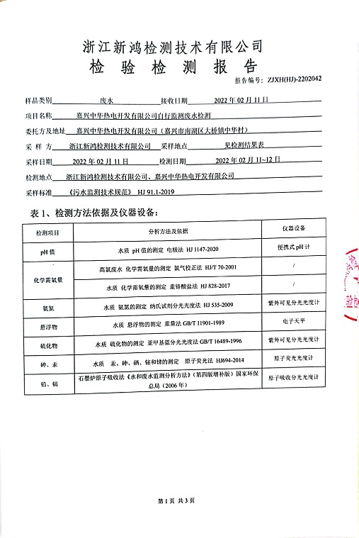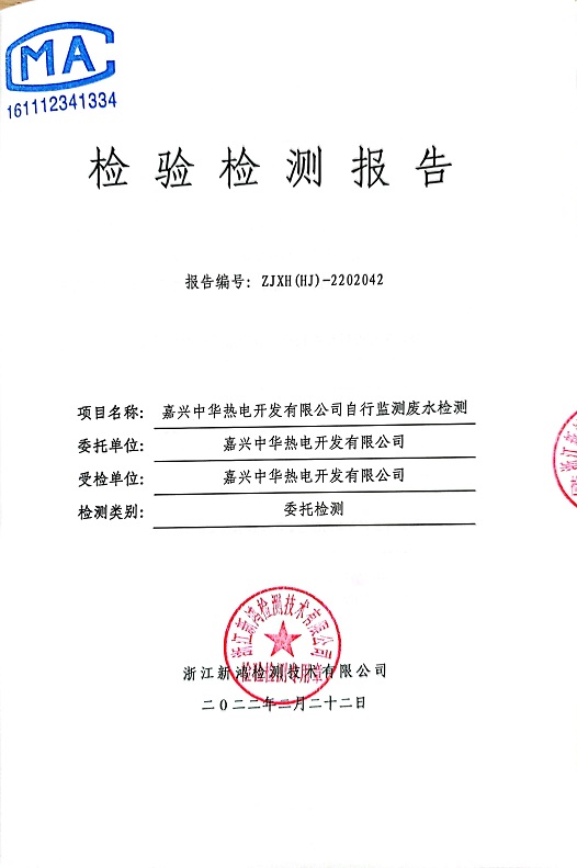 報告名稱:中華熱電2022.2月廢水檢測報告