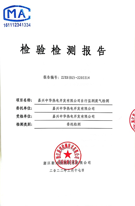 報(bào)告名稱:中華熱電2022.3月廢氣檢測(cè)報(bào)告