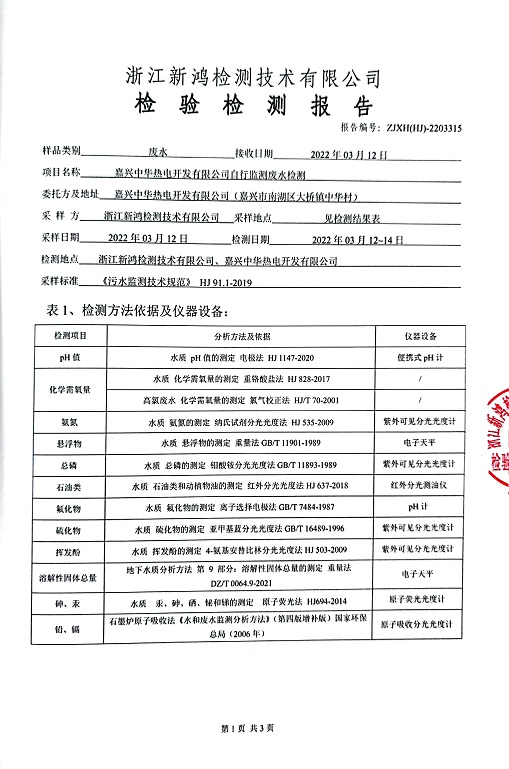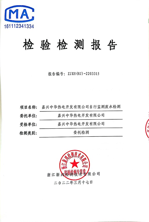報告名稱:中華熱電2022.3月廢水檢測報告