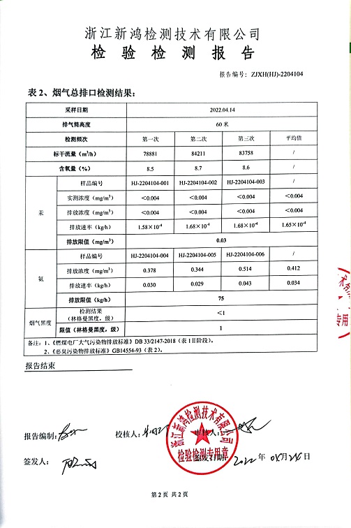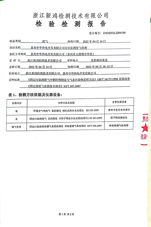 報(bào)告名稱:中華熱電2022.4月廢氣檢測(cè)報(bào)告