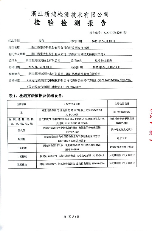 報(bào)告名稱:縱華2022.4月廢氣檢測報(bào)告