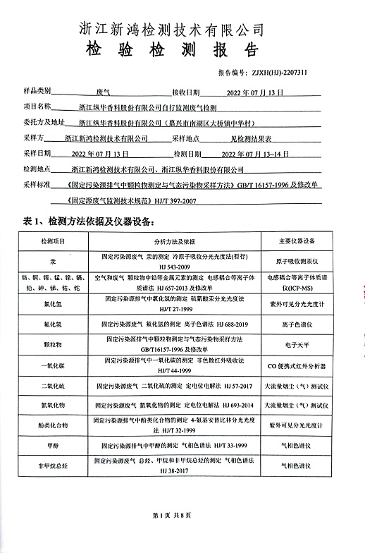 報(bào)告名稱:縱華2022年7月廢氣檢測(cè)報(bào)告