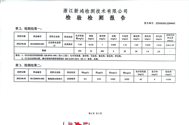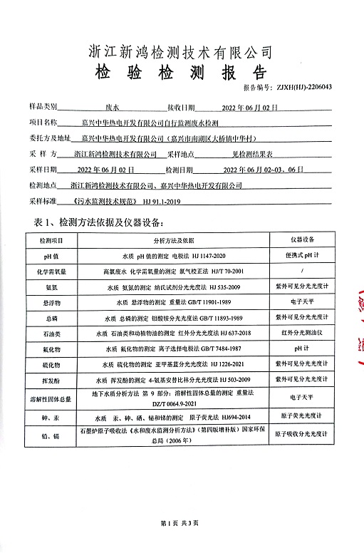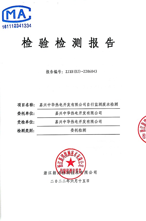 報(bào)告名稱:中華熱電2022年6月廢水檢測(cè)報(bào)告