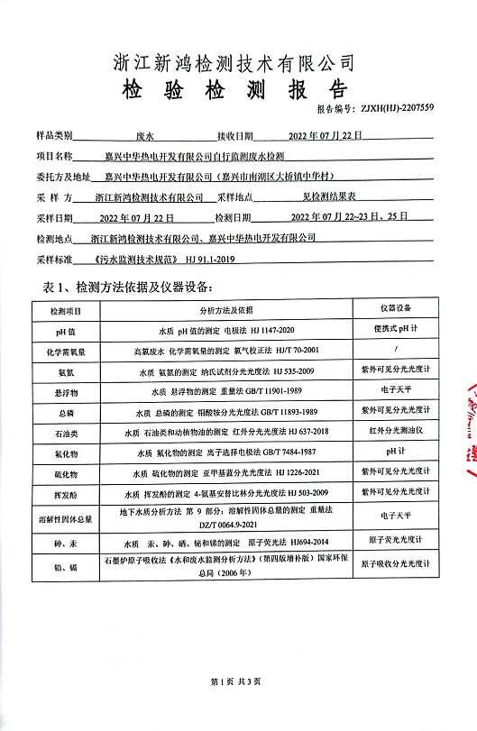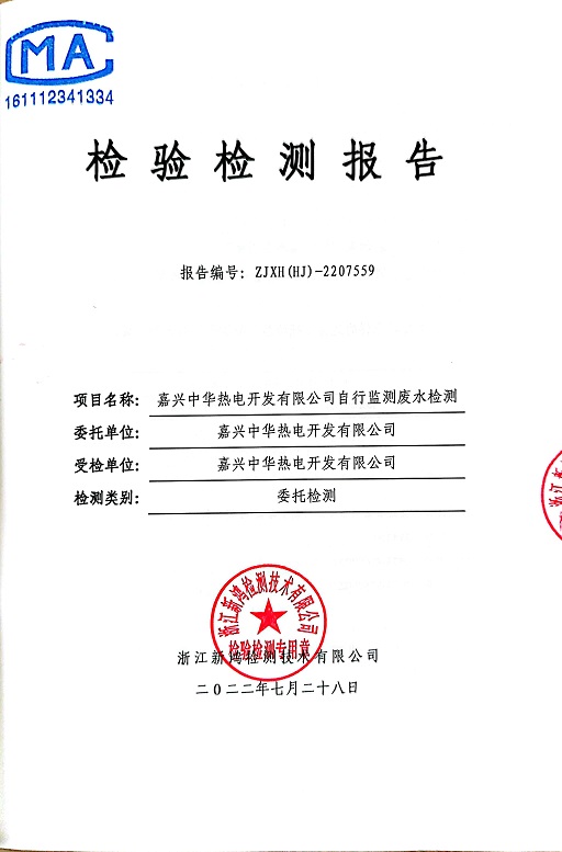 報(bào)告名稱:中華熱電2022年7月廢水檢測報(bào)告