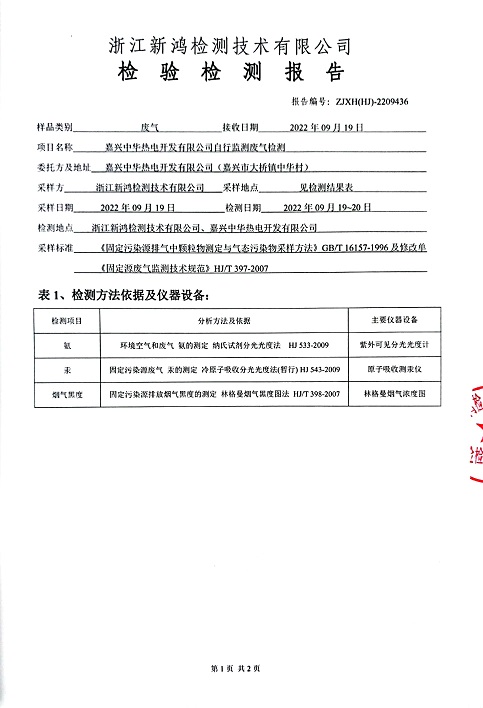 - 中華熱電9月廢氣檢測(cè)報(bào)告