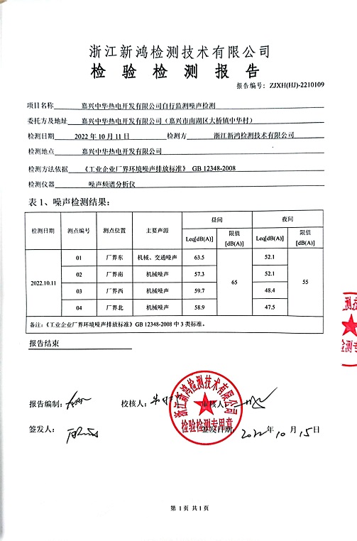 報(bào)告名稱(chēng):中華熱電2022年4季度噪聲檢測(cè)報(bào)告