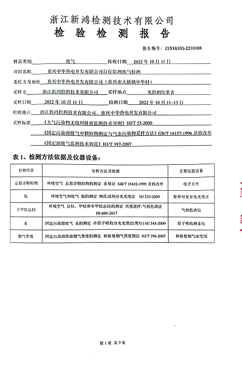 報告名稱:中華熱電2022年10月廢氣檢測報告
