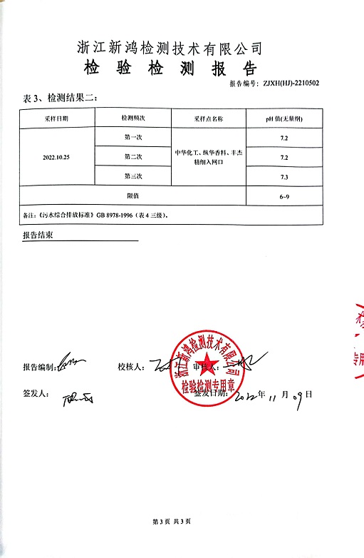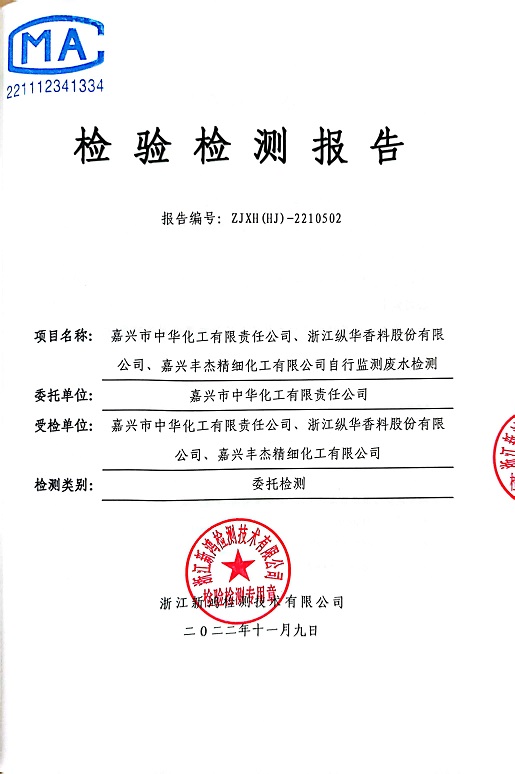 報(bào)告名稱:中華化工、縱華、豐杰2022年4季度廢水檢測(cè)報(bào)告