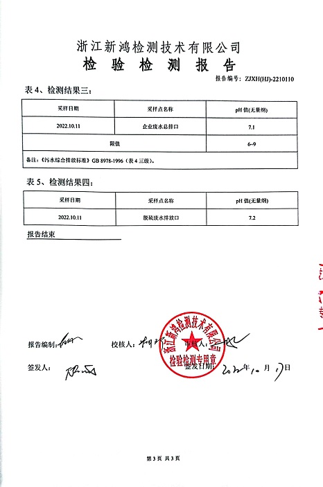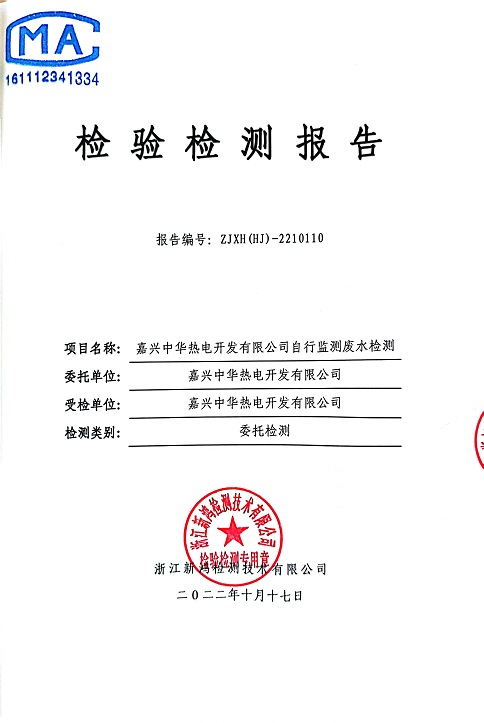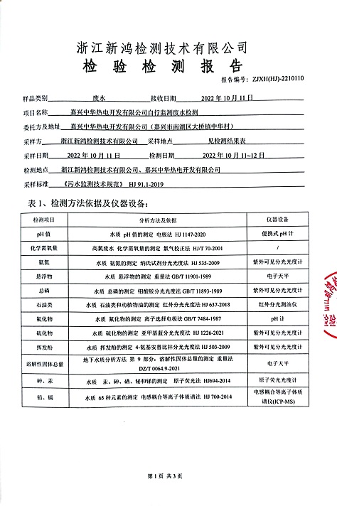 報告名稱:中華熱電2022年10月廢水檢測報告