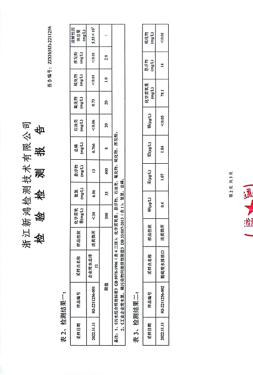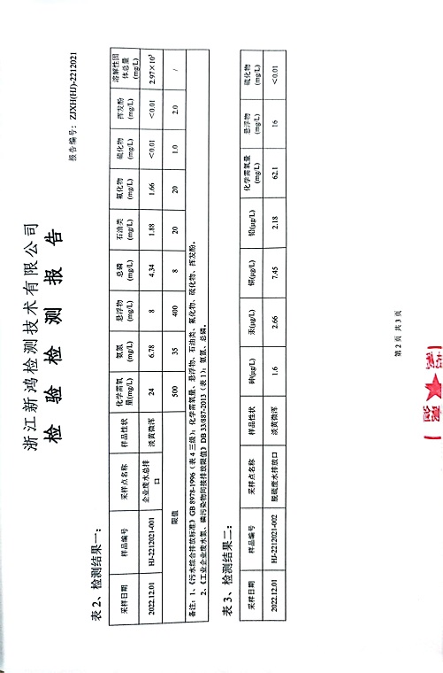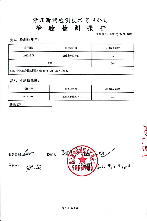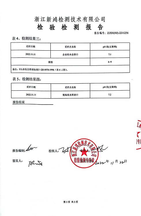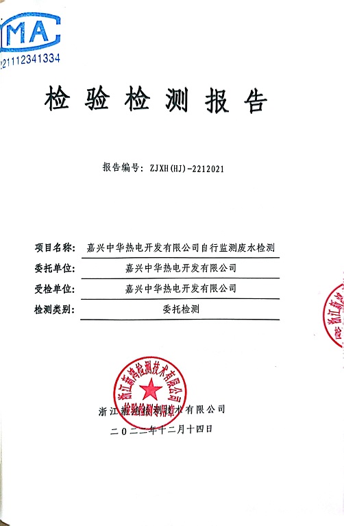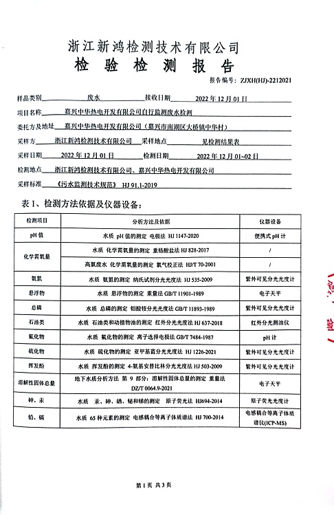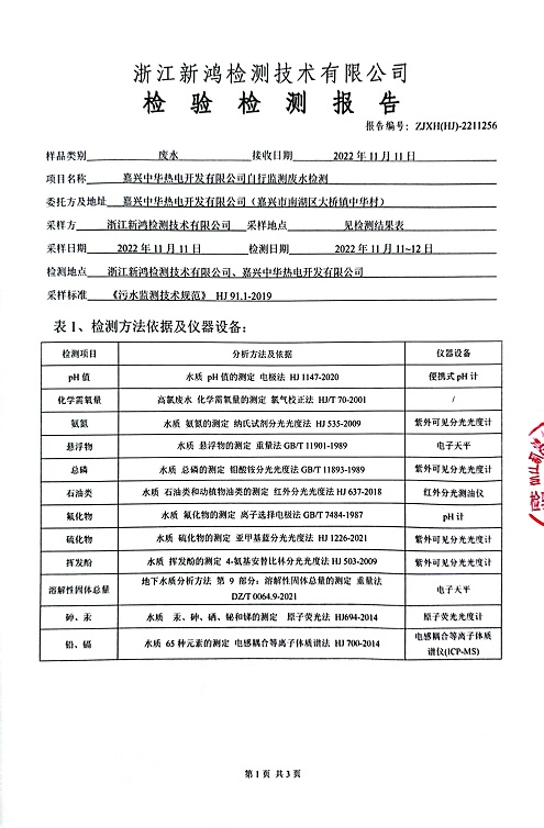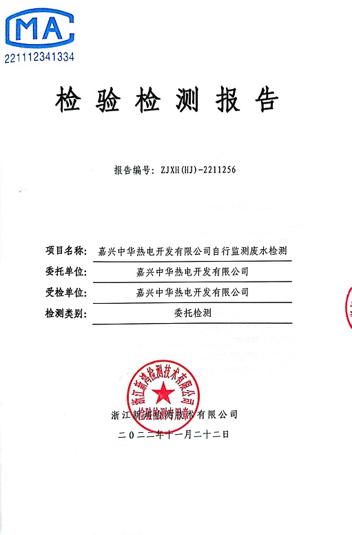 報告名稱:中華熱電2022年11、12月廢水檢測報告