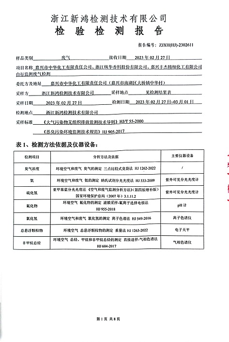 - 中華化工4季度檢測報(bào)告