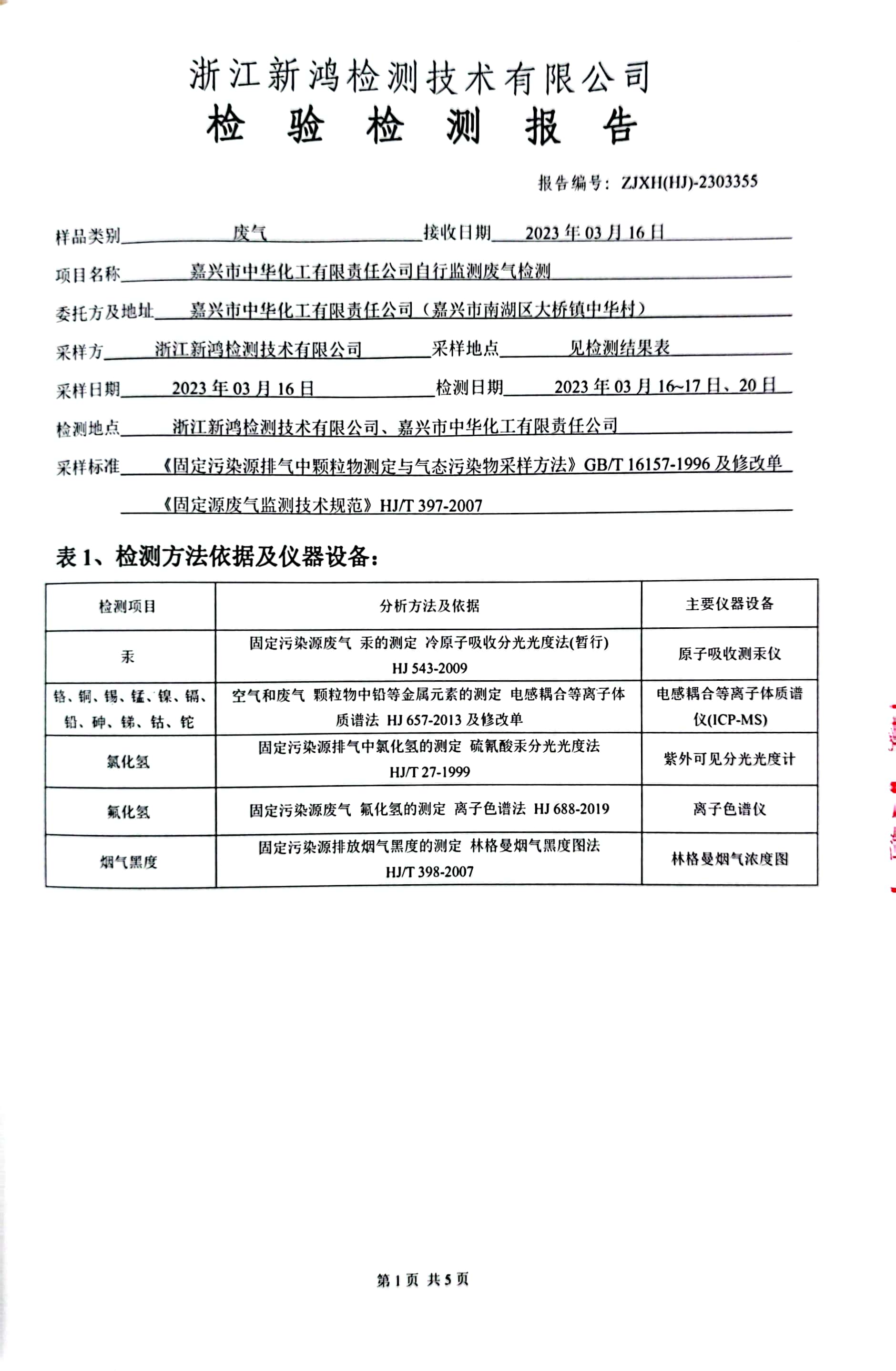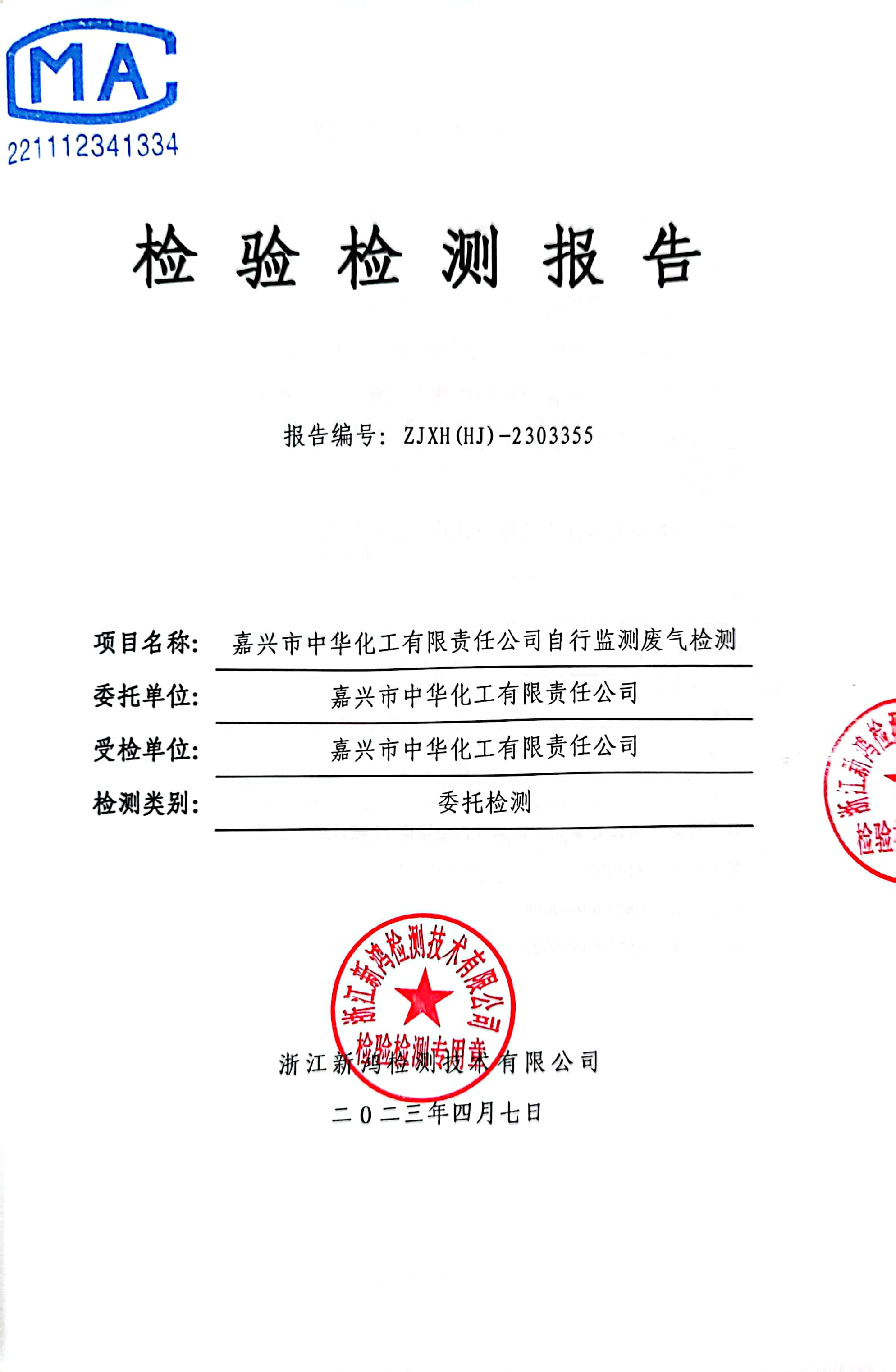 報(bào)告名稱(chēng):中華化工2023年3月廢氣檢測(cè)報(bào)告