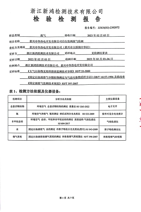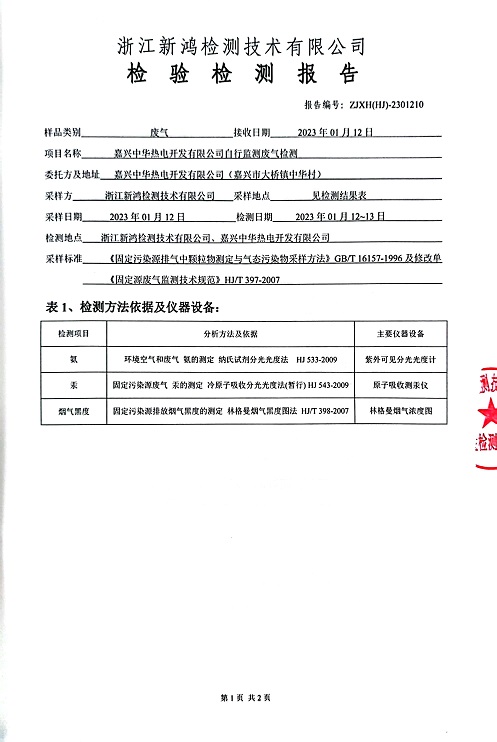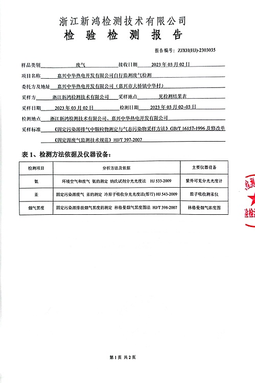 報告名稱:中華熱電2023.1-3月廢氣檢測報告