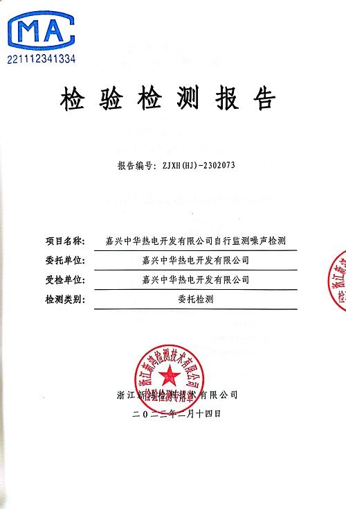 報(bào)告名稱:中華熱電2023年1季度噪聲檢測(cè)報(bào)告