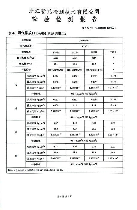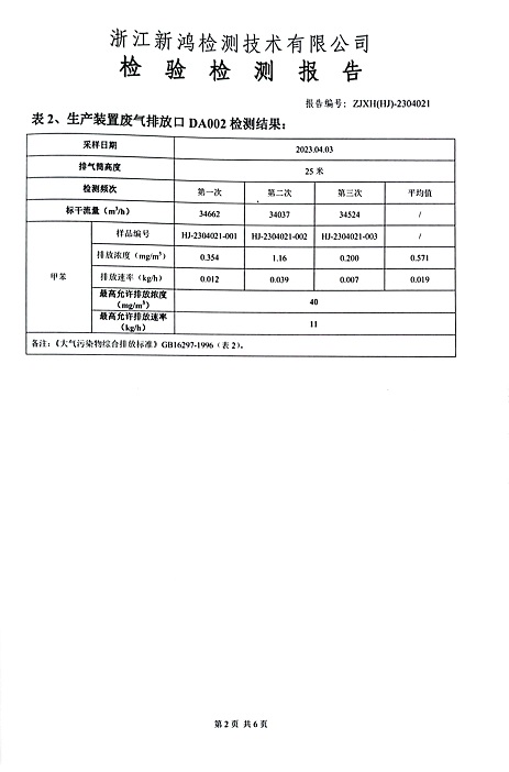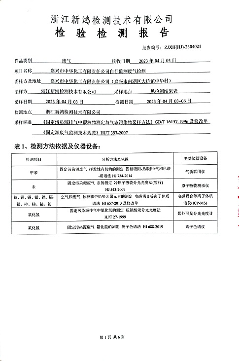 報告名稱:中華化工2023.4月廢氣檢測報告
