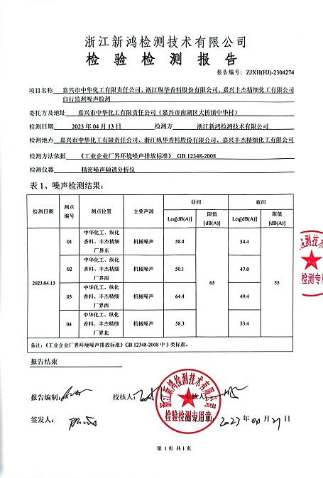 - 中華化工噪聲4季度檢測報(bào)告