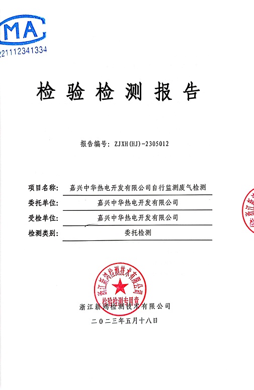 報(bào)告名稱:中華熱電2023.5月廢氣檢測(cè)報(bào)告