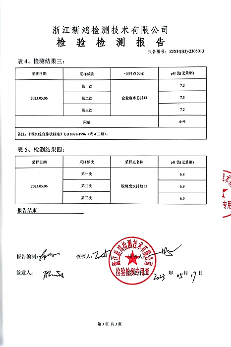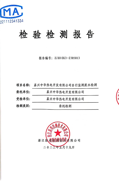 報(bào)告名稱:中華熱電2023.5月廢水檢測報(bào)告