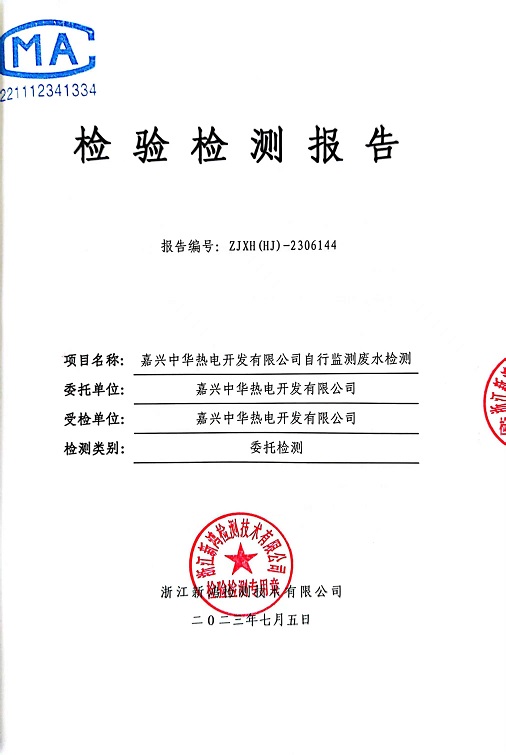 報告名稱:中華熱電2023.6月廢水檢測報告