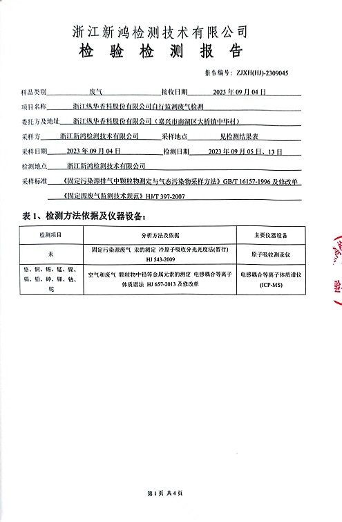報(bào)告名稱:縱華2023.9月廢氣檢測報(bào)告