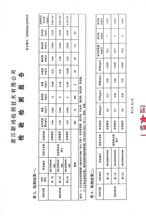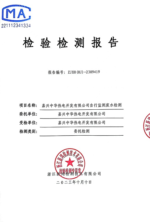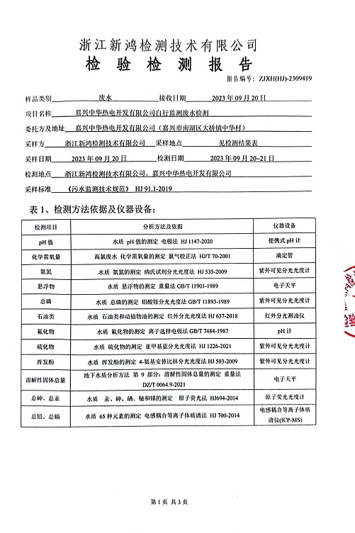 報(bào)告名稱:中華熱電2023.9月廢水檢測(cè)報(bào)告