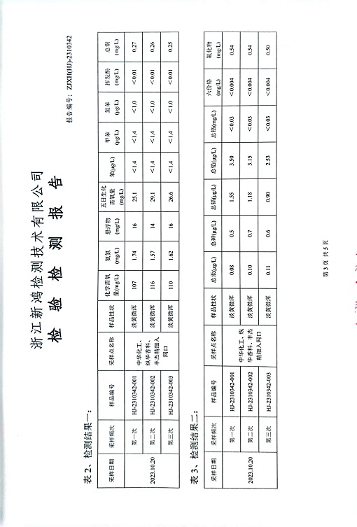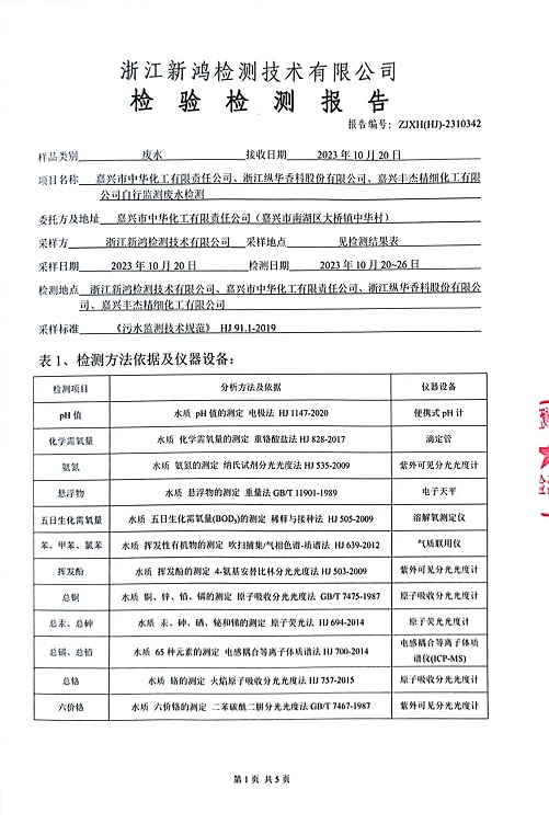 報(bào)告名稱:中華化工、縱華、豐杰2023.4季度廢水檢測(cè)報(bào)告