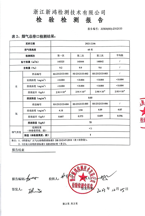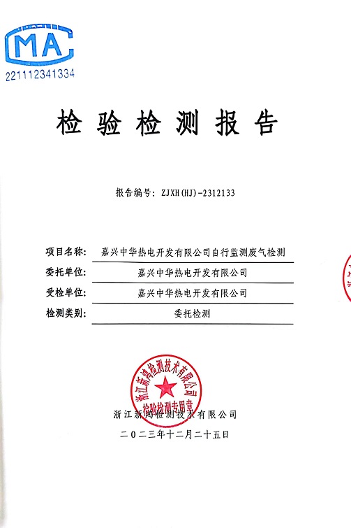 報(bào)告名稱:中華熱電2023年12月廢氣檢測(cè)報(bào)告