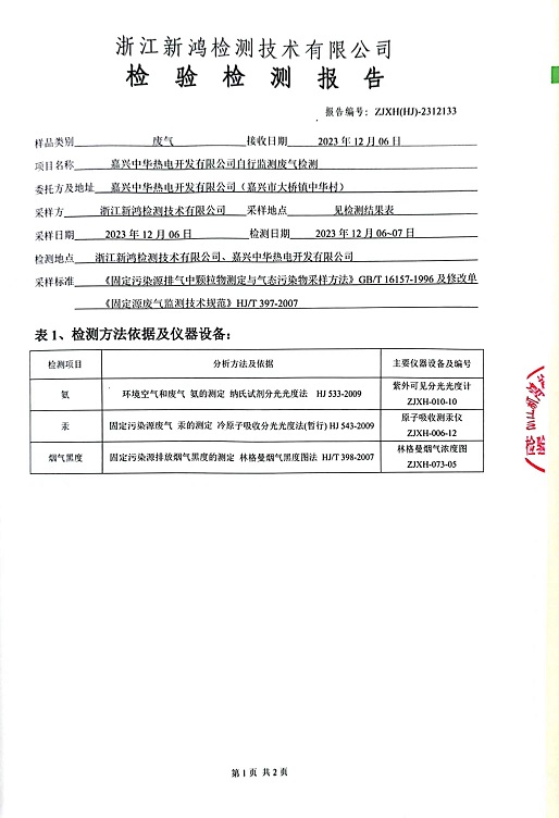 - 中華熱電12月廢氣檢測(cè)報(bào)告