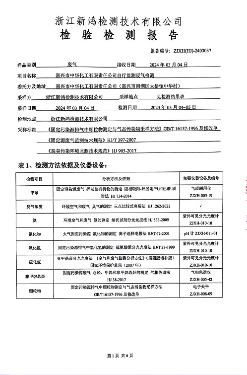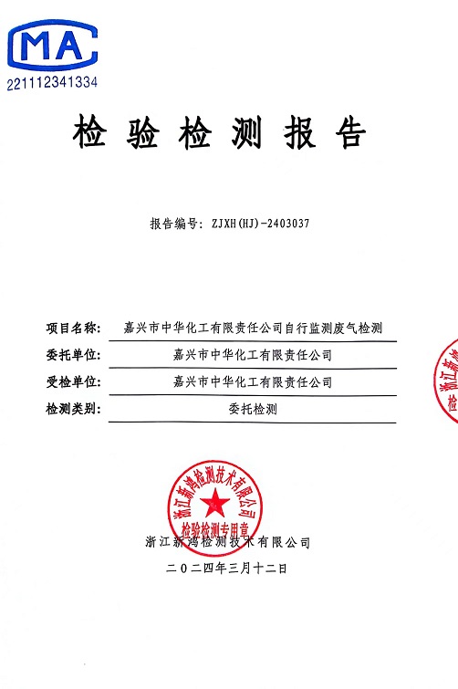 報(bào)告名稱(chēng):2024年中華化工1季度廢氣檢測(cè)報(bào)告