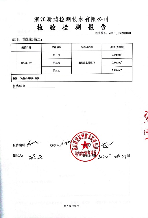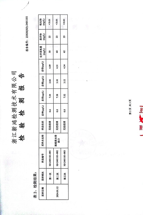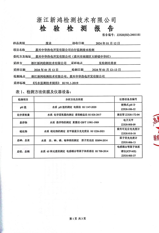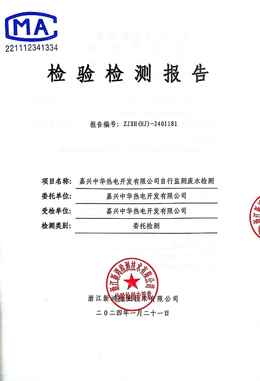 報(bào)告名稱:2024年中華熱電1月廢水檢測(cè)報(bào)告