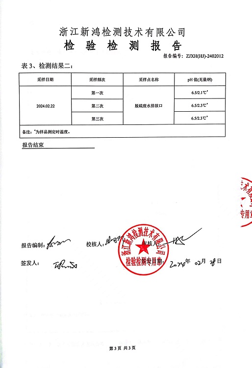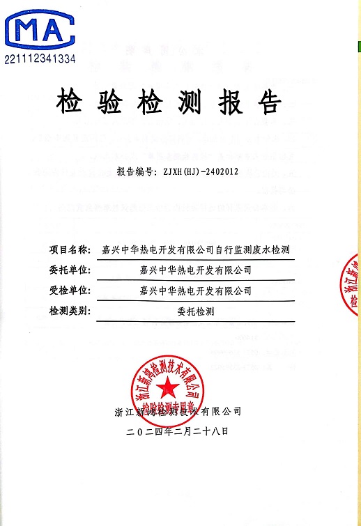 報告名稱:2024年中華熱電2月廢水檢測報告