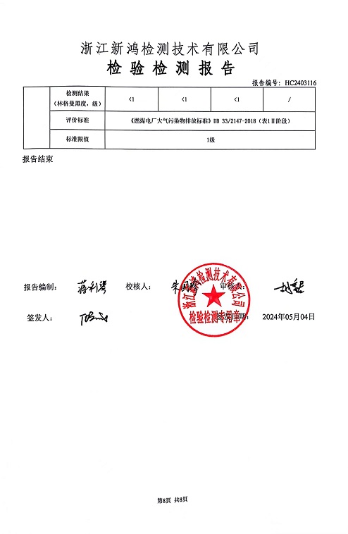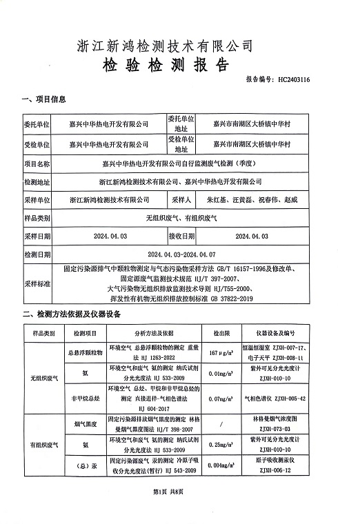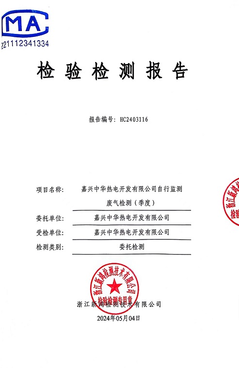 報告名稱:2024年中華熱電4月廢氣檢測報告
