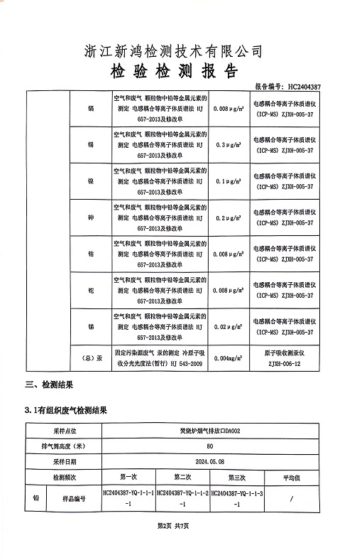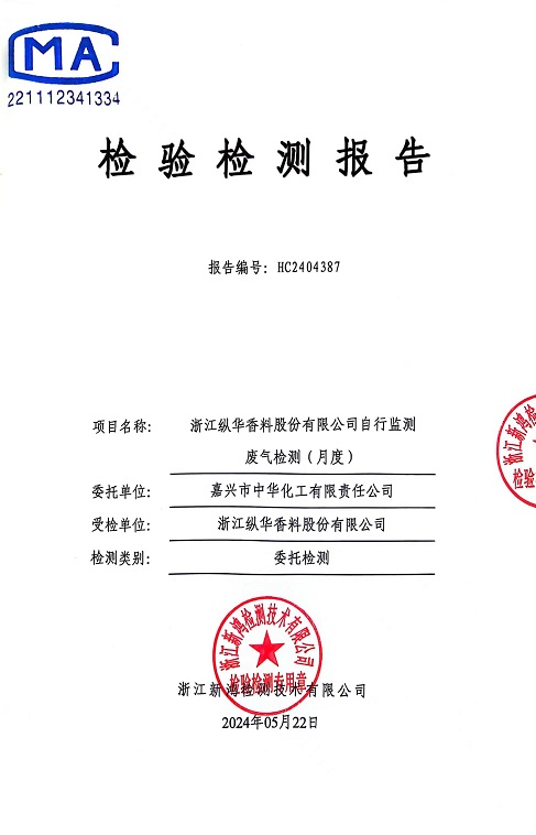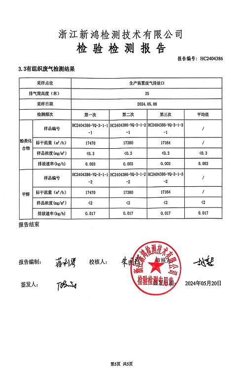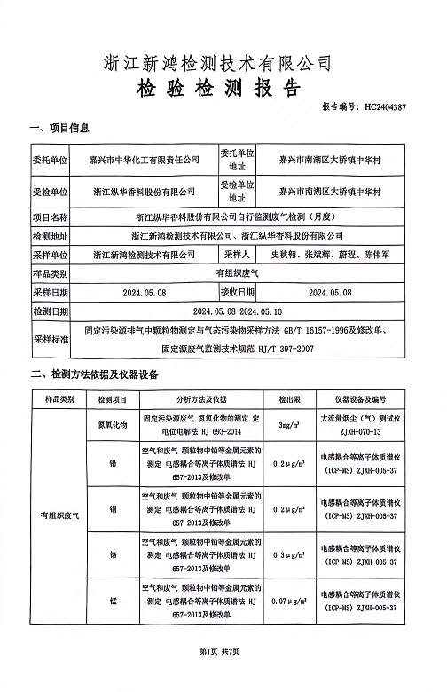報告名稱:2024年縱華5月廢氣檢測報告