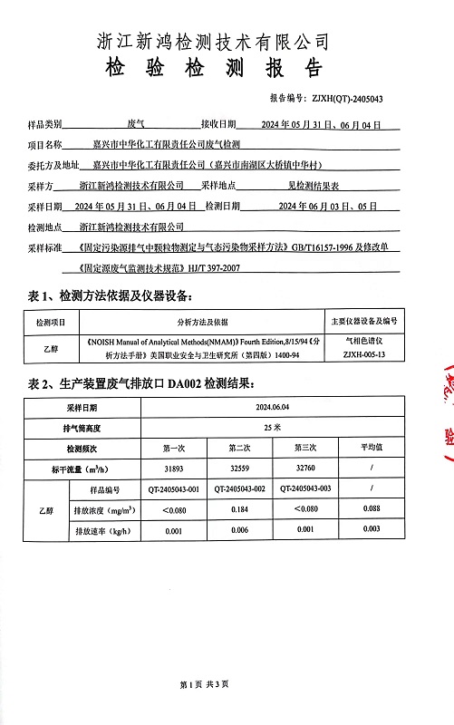 - 中華化工4季度檢測報(bào)告