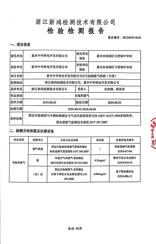 報(bào)告名稱(chēng):2024年中華熱電6月廢氣檢測(cè)報(bào)告
