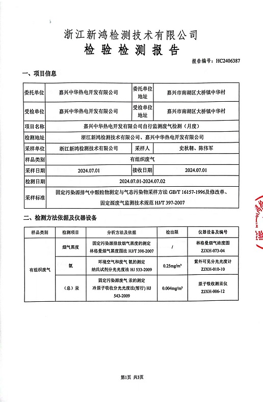 報(bào)告名稱:中華熱電7月廢氣檢測(cè)報(bào)告