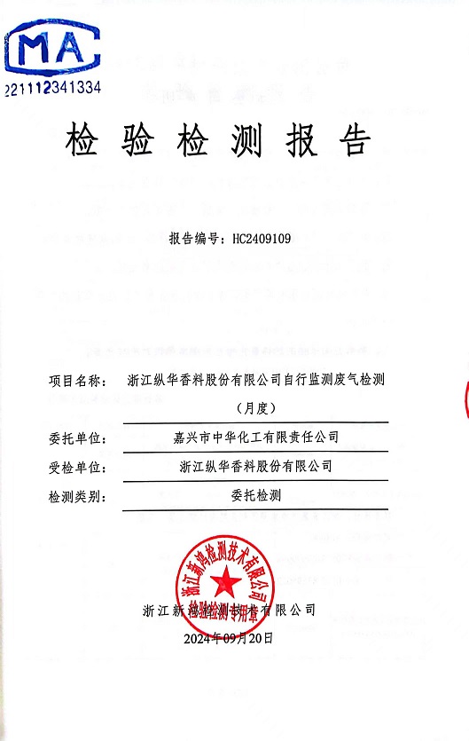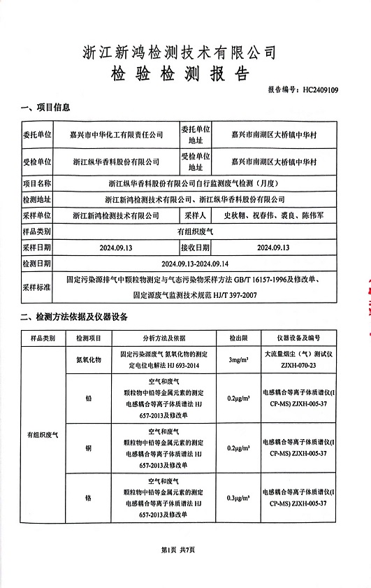 報(bào)告名稱:縱華9月廢氣檢測報(bào)告