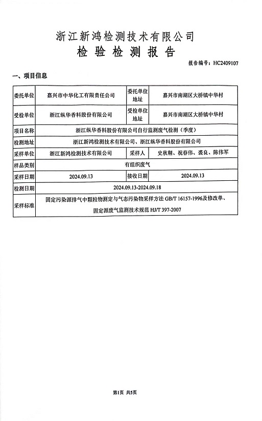 報(bào)告名稱:縱華3季度廢氣檢測報(bào)告