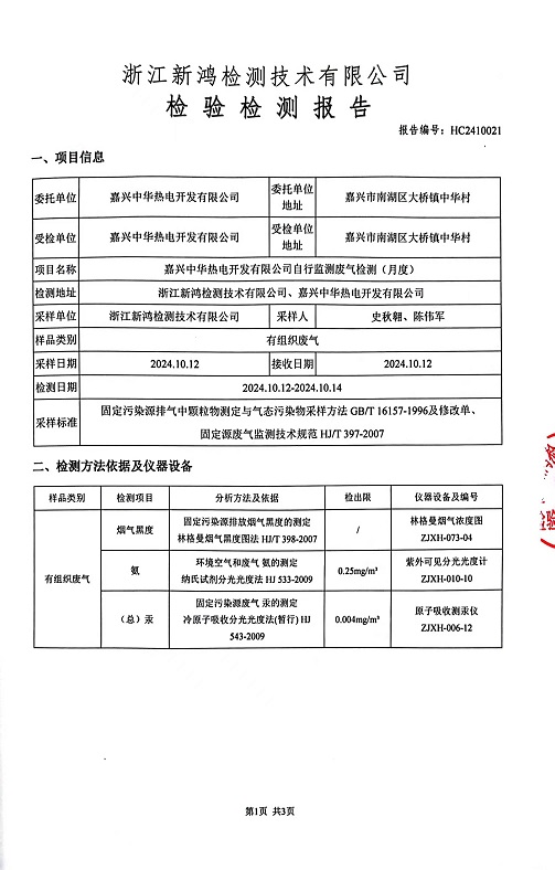 - 中華熱電10月廢氣檢測(cè)報(bào)告
