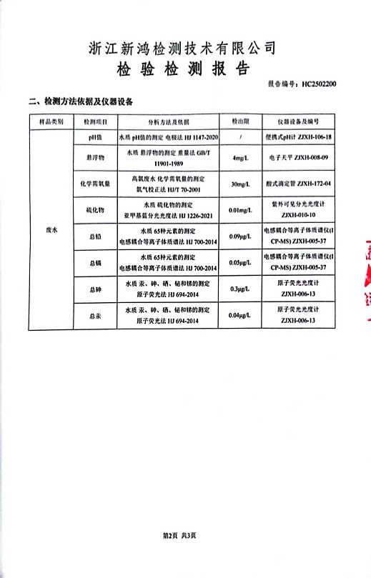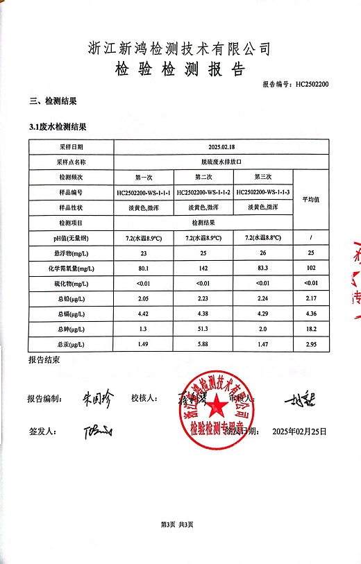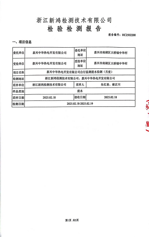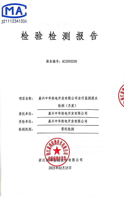 報告名稱:中華熱電2025年2月廢水檢測報告