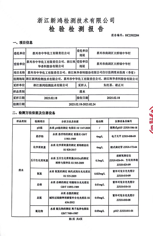 - 中華化工4季度檢測(cè)報(bào)告