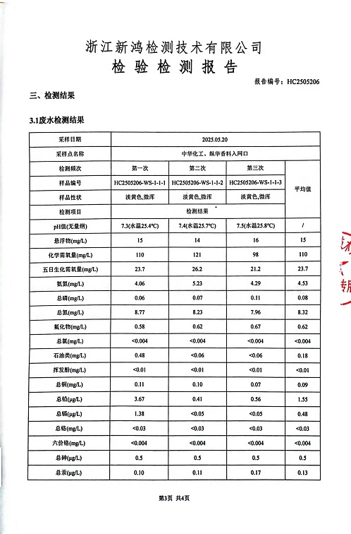 報告名稱:中華化工2季度廢水檢測報告