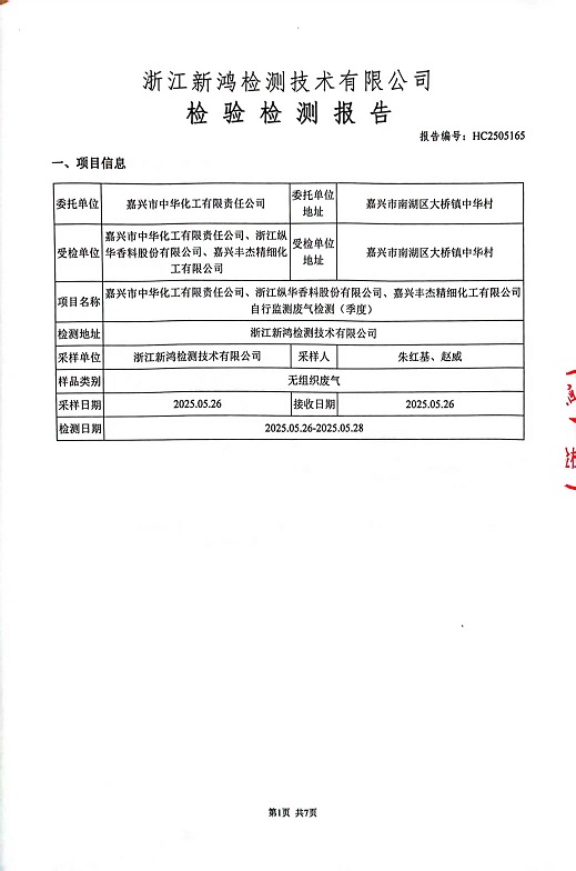報(bào)告名稱:中華化工、縱華、豐杰2025年2季度廠界檢測(cè)報(bào)告