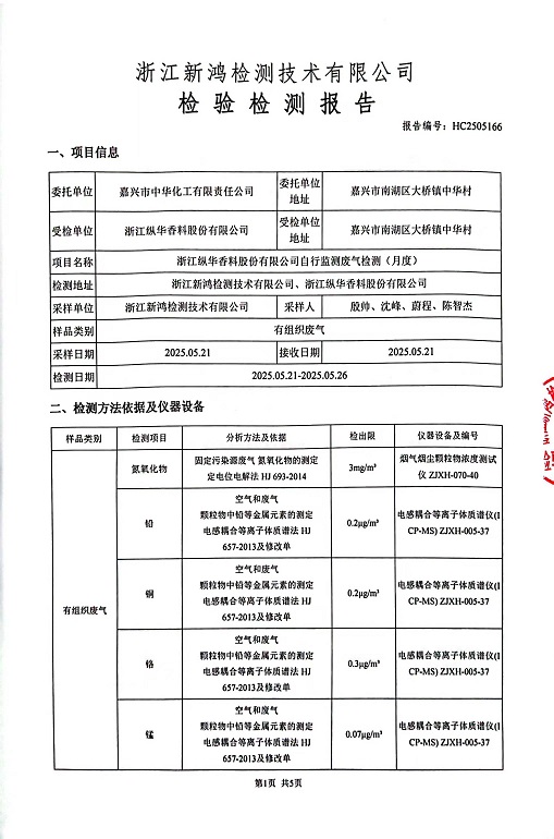 報(bào)告名稱:縱華香料5月廢氣檢測(cè)報(bào)告