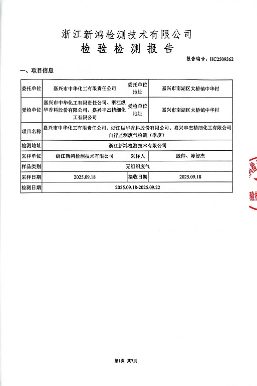 報(bào)告名稱(chēng):中華化工3季度廠界檢測(cè)報(bào)告